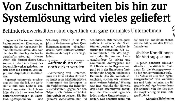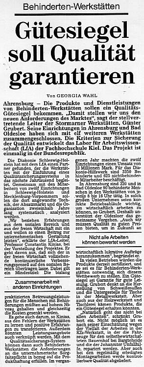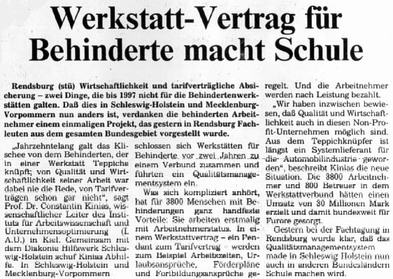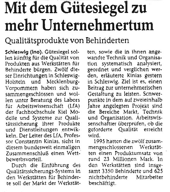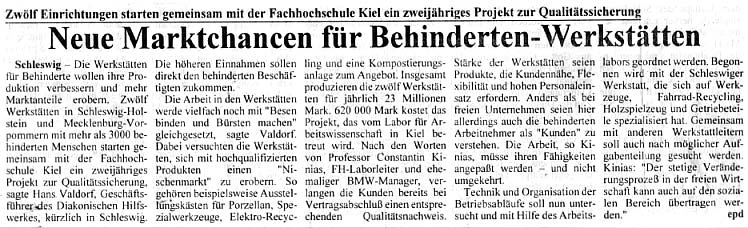 Neue Marktchancen für Behinderten-Werkstätten Zwölf Einrichtungen starten gemeinsam ein zweijähriges Projekt zur Qualitätssicherung