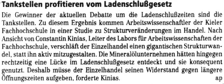 Verlierer sind die Tankstellen Erste Trends zum neuen Ladenschluss