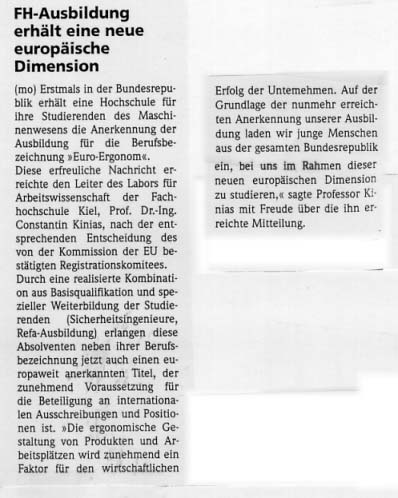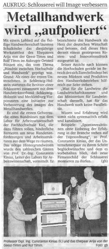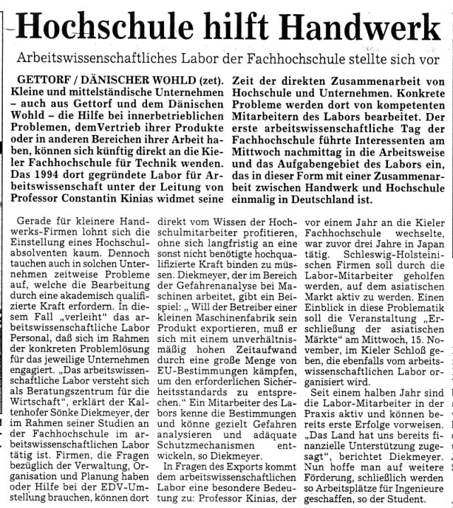 Hochschule hilft Handwerk Arbeitswissenschaftliches Labor der Fachhochschule Kiel stellte sich vor