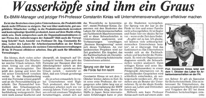 Wasserköpfe sind ihm ein Graus Ex-BMW-Manager und jetziger Professor Constantin Kinias will Unternehmensverwaltungen effektiver machen