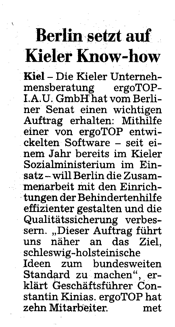 Berliner Senat beauftragt ergoTOP Berlin setzt auf Kieler Know-how
