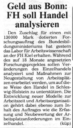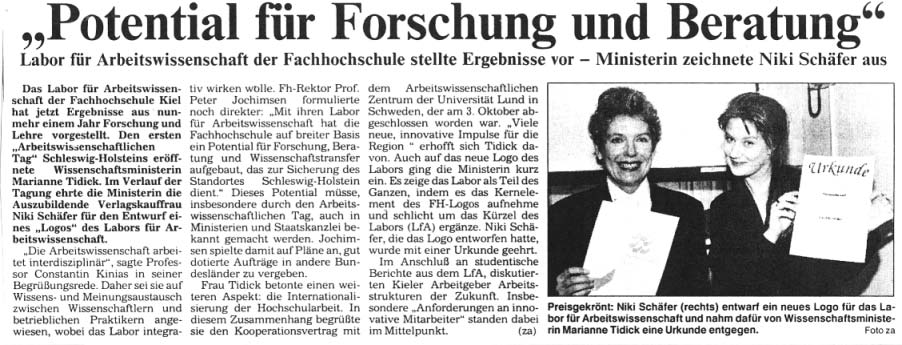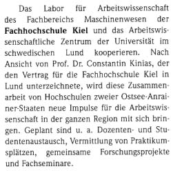 Potential für Forschung und Beratung Labor für Arbeitswissenschaft der Fachhochshule Kiel stellte Ergebnisse vor