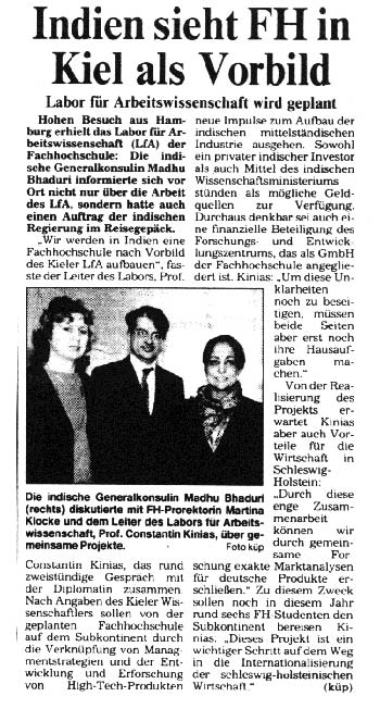 Indien sieht FH als Vorbild Labor für Arbeitswissenschaft wird geplant
