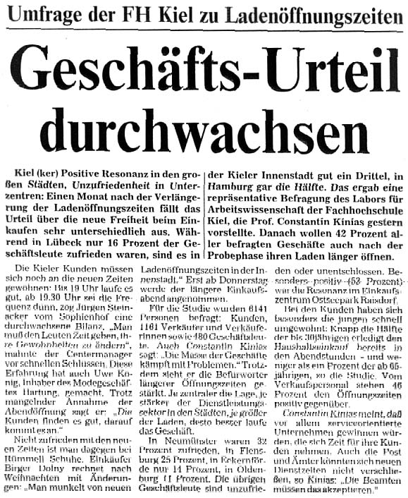 Geschäfts-Urteil durchwachsen Umfrage zu den Ladenöffnungszeiten