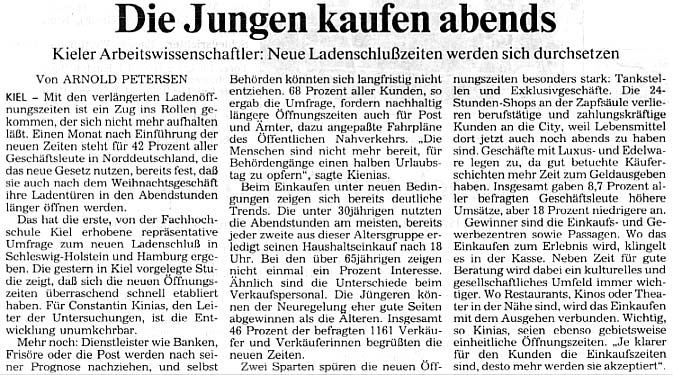 Die Jungen kaufen abends Kieler Arbeitswissenschaftler: Neue Ladenschlusszeiten werden sich durchsetzen