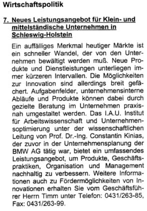 Auszug aus der Broschüre "Innovationskreis Westküste", ver.di 30. März 2001